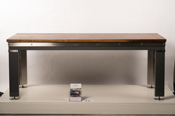 Table BODO, handcrafted from the finest metals with a unique native walnut table top. Aluminum table frame welded together. The frame is powder coated. Table feet, height adjustable up to 3” handcrafted of round stainless steel plates.